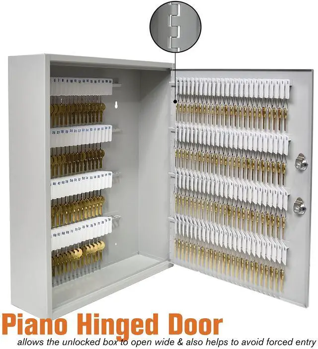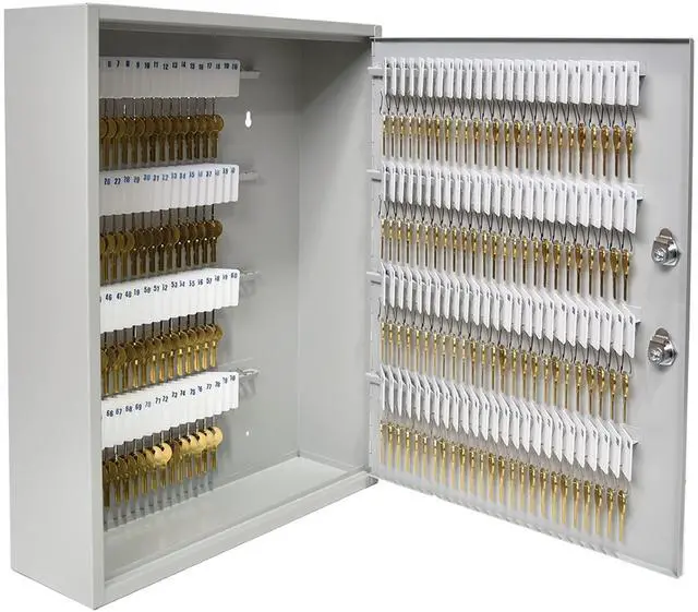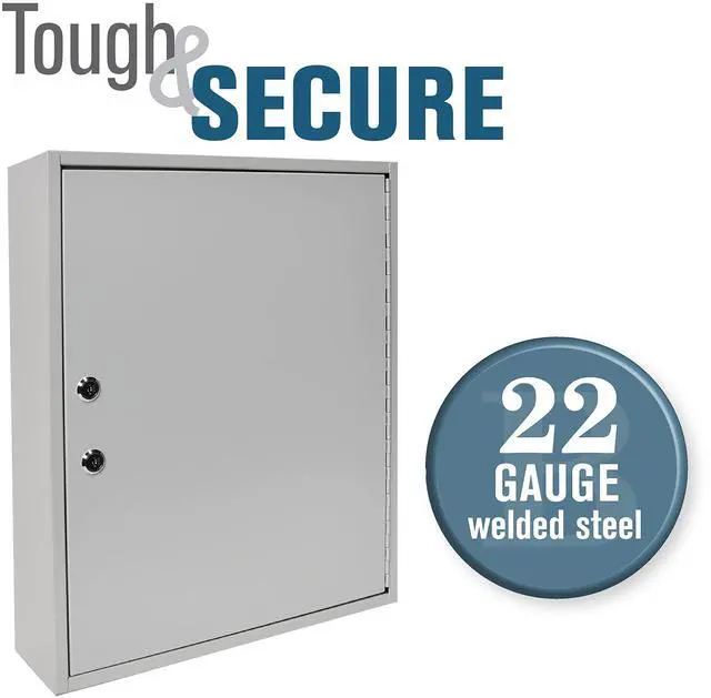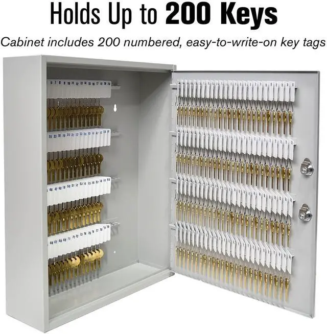 HOOK KEY CABINET: Stay organized with our hook-style cabinet that can store up to 200 keys. Constructed of welded, 22-gauge steel with a scratch-resistant, powder coated finish this key box is perfect for busy areas.