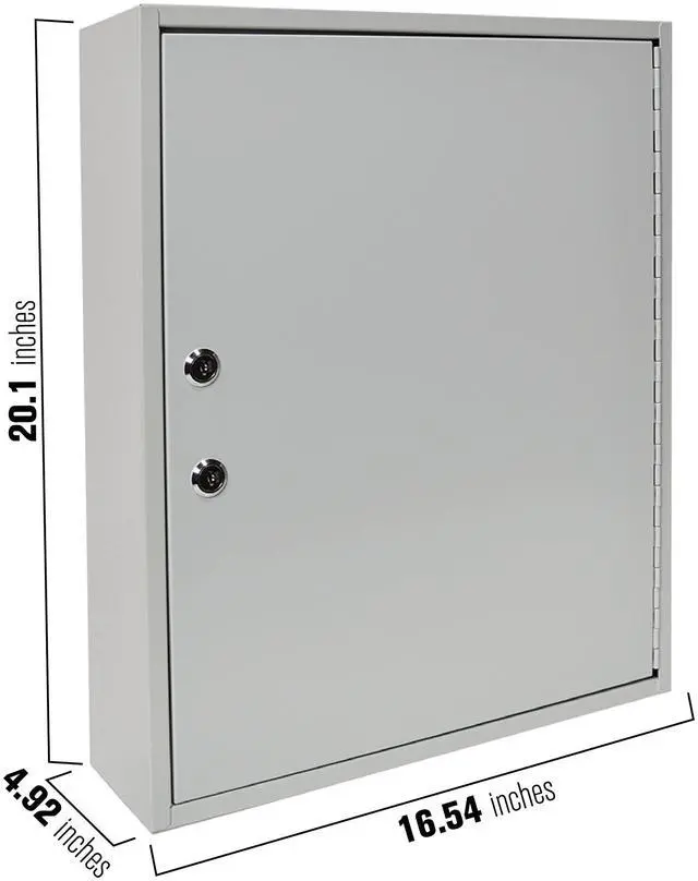 ^^ DIMENSIONS: The key storage box measures 16.54 -inches in width, 20.1 -inches in height, and 4.92 -inches in depth. It includes 200 numbered key tags, 20 out key on yellow tags, and mounting hardware.
