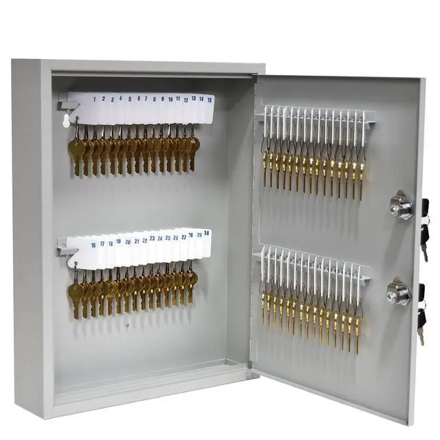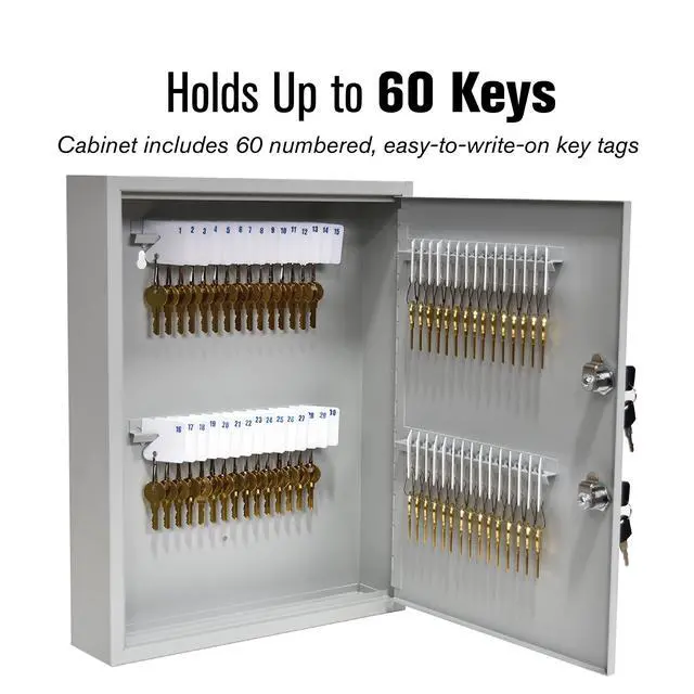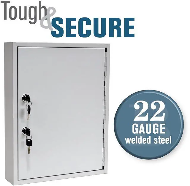 HOOK KEY CABINET: Stay organized with our hook-style cabinet that can store up to 60 keys. Constructed of welded, 22-gauge steel with a scratch-resistant, powder coated finish this key box is perfect for busy areas.