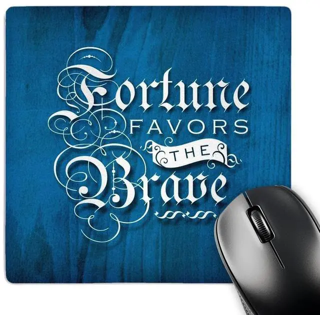 3dRose Mouse Pad Blue Wood Effect with White Gothic Script- Fortune Favors The Brave - 8 by 8-Inches (mp_241117_1)