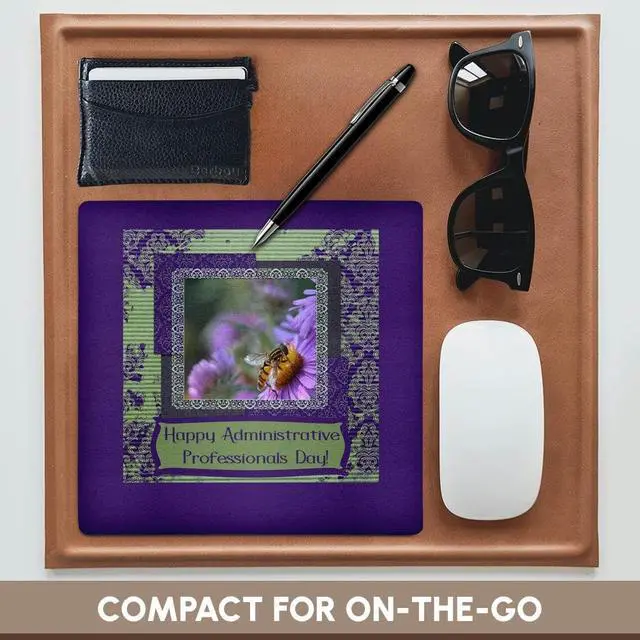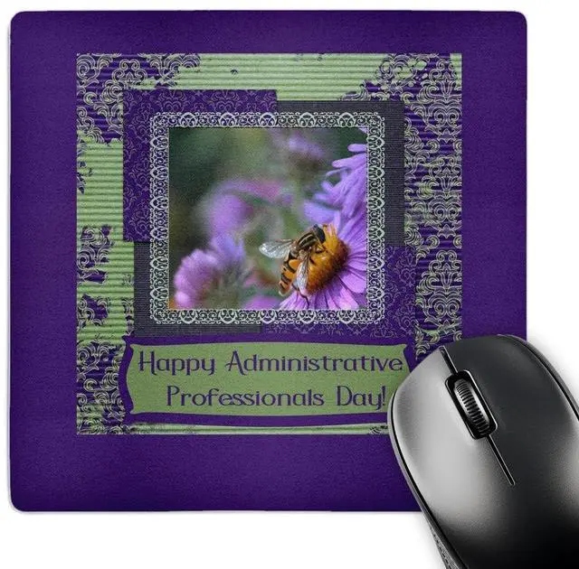 3dRose Mouse Pad Bee, English Aster, Administrative Professionals Day, Damask Frame - 8 by 8-Inches (mp_282229_1)