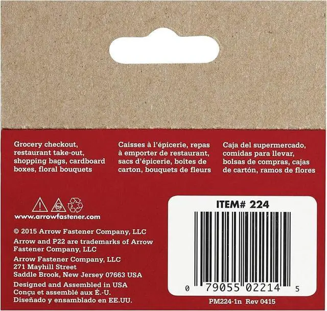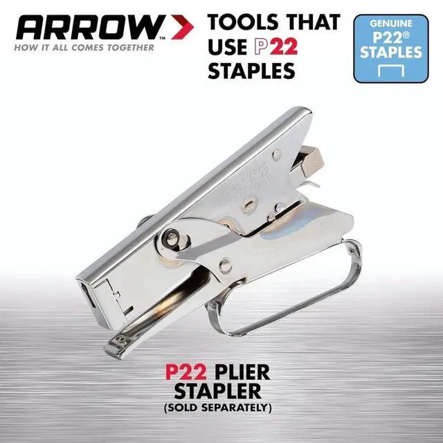 Arrow's P22 staples are intended for use with the P22 heavy duty industrial plier type stapler. This model has a leg length of 1/4-inch. Designed specifically for stapling paper, P22 staples are used on desktops and counters in restaurants, dry cleaners, floral shops, schools, and homes around the world. The P22 staple is specially designed to fit the Arrow P22 plier stapler and is great for use on bags, tags, papers, and labels. Available in two leg lengths, the P22 staple makes everyday paper fastening a breeze.
