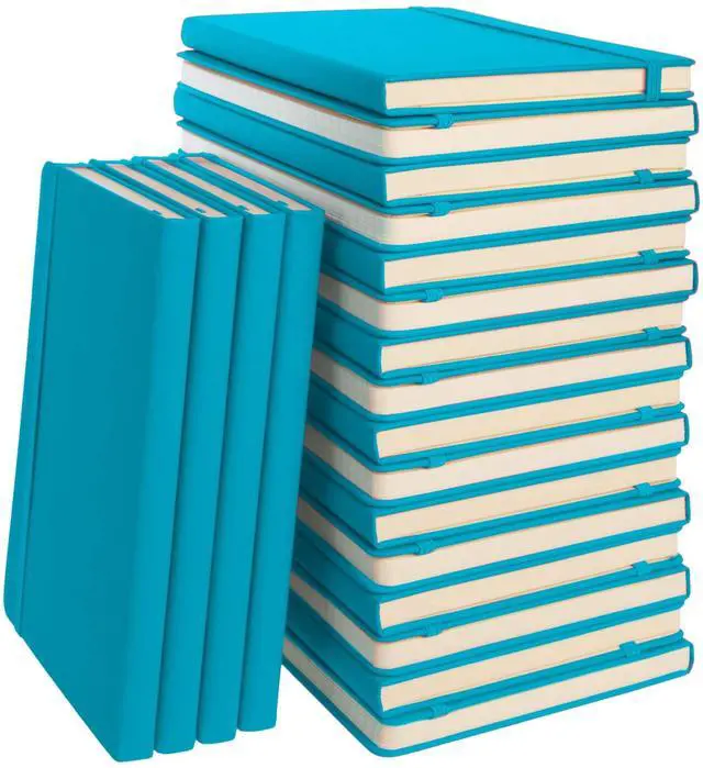 The Simply Genius A5 Lined Hardcover Notebook Set is an elegantly designed and practical solution for a variety of writing needs. This bulk set includes 20 notebooks, each featuring a durable faux leather cover in a sophisticated aqua shade. With 192 cream-colored, college-ruled pages, these lined journals are perfect for capturing your thoughts, ideas, and plans. As autumn approaches, enjoy quiet moments indoors with these notebooks, ideal for personal reflections or creative brainstorming during cozy afternoons. Tailored for a wide range of users, these notebooks serve as indispensable tools for students, professionals, and travelers.