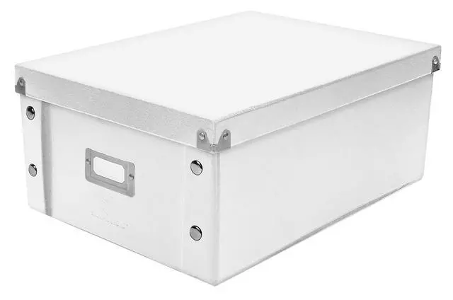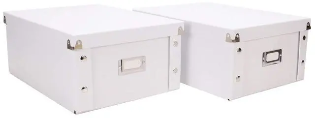 CD/DVD Storage Box holds 60 CDs/DVDs in full jewel cases, 120 CDs/DVDs in slim cases and 330 CDs/DVDs in CD sleeves. Design features heavy-duty fiberboard panels and industrial-size snaps. File storage pieces ship and store flat, and can be assembled in a snap. Exterior features leather like laminate. The front of the box has a chrome card holder for labeling.
