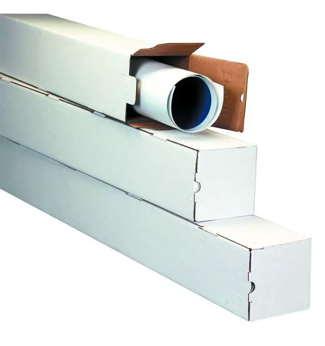 5 x 5 x 48" White Square Mailing Tubes. Square tubes will not roll around which makes them easier to pack and ship than traditional round mailing tubes. These one piece tubes ship flat to save space. Tubes fold together fast without tape or glue. Constructed from 200#/ECT-32-B white corrugated. Proudly made in the USA!