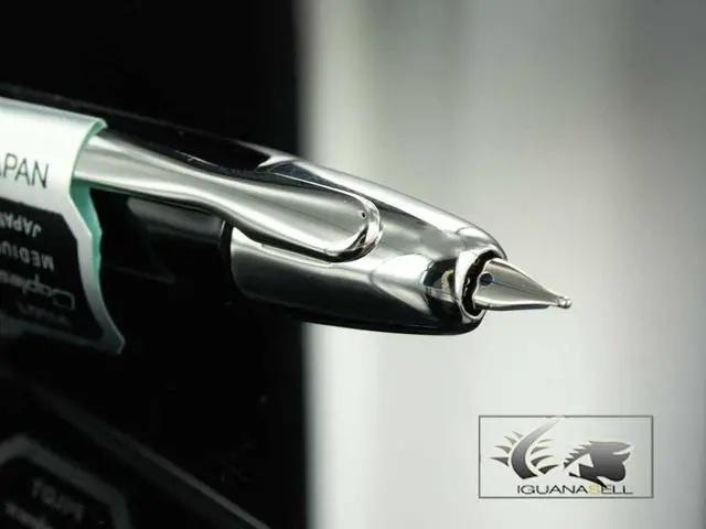 This Vanishing Point fountain pen by Pilot features an ingenious patented design that eliminates the need for a cap. The top push button advances and retracts the nib inside the metal body. This pen is finished in Black with Rhodium accents, including the18 karat gold nib in Medium width. This wonderfully unique pen is packaged in a gift box that includes a blue ink cartridge, cartridge cap, and ink converter.