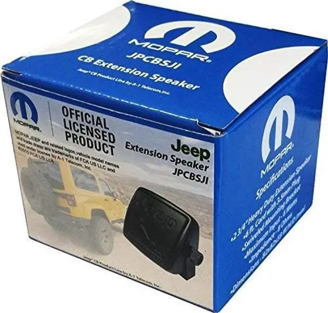 The JPCBSJI is a 6 watt compact external speaker with an embossed Jeep Wrangler on the grill, which is perfect for CB radios and various other auto and home appplications. It includes a 6 cord with a 3.5 mm plug and swiveled mounting bracket