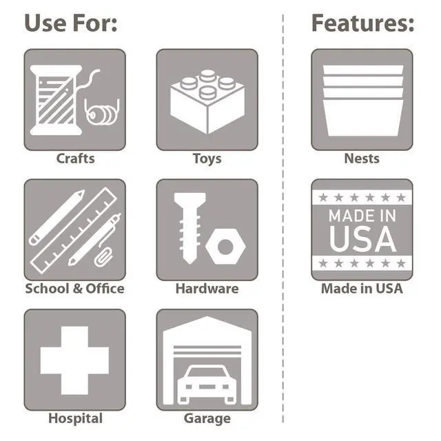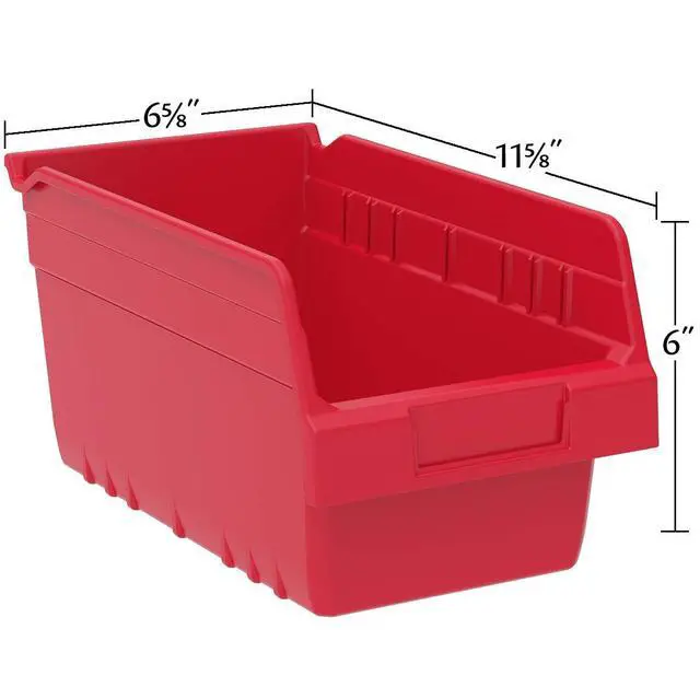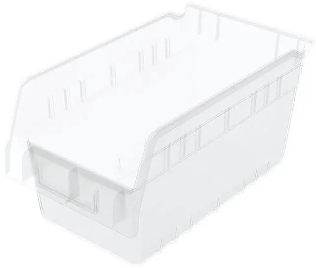 You cant go wrong with these handy Akro-Mils ShelfMax nesting organizer bins. Sort nuts, bolts, plumbing fittings and other small parts and tools. ShelfMax Bins are sized to fit on 12-inch deep shelving. Color code and organize your food pantry shelves, hobby room, garage, or bathroom cabinets. These plastic storage bins work in the refrigerator or freezer and are great for organizing toys and crafting supplies. Akro-Mils ShelfMax Bins accept width dividers (sold separately) to provide customized storage solutions. Card stock label holders to fit inside the front label area are sold separately.