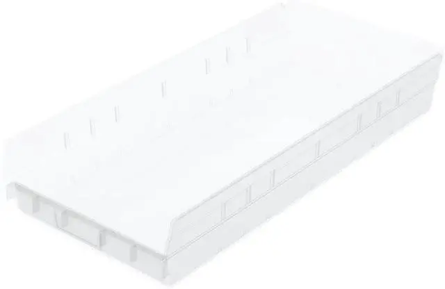 • VERSATILE STORAGE CONTAINERS: Akro-Mils Shelf Bins are great for any space; Use them on shelves, as an under sink organizer, cabinet organizer, or for garage storage; Bins fit with 12", 18", and 24" deep storage shelves, vertical storage, and pick racks