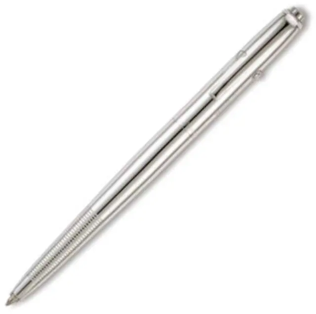 Chrome Plated Astronaut Space Pen Engraved with "July 20, 1969" and the Fisher logo. This is the original Fisher Space Pen that was used on the Apollo 7 space mission in 1968 after 2 years of testing by NASA and has been used on all manned space flights since then. The design and construction of this pen has not changed in 36 years. The pen you buy today is exactly the same as the one taken to the moon in 1969. It is a heavy pen and the weight rests reassuringly in your hand as you write.