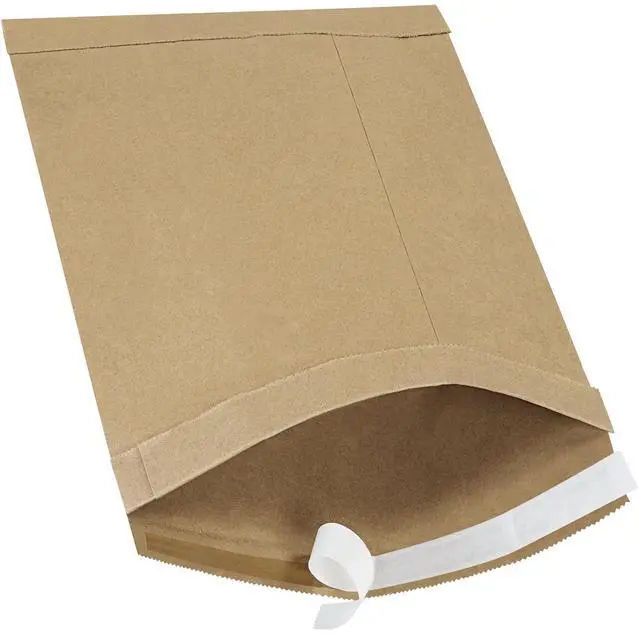 8 1/2" x 14 1/2" Kraft #3 Self-Seal padded Mailers. Fiber padding expands as package is handled absorbing shock and protecting contents from damage. Mailers feature peel and seal closure. End flaps are coated with a Natural rubber adhesive that only adheres to itself and keeps contents secure during shipping. BAGS are both moisture and puncture resistant. No additional cushioning needed. Sold in case quantities.