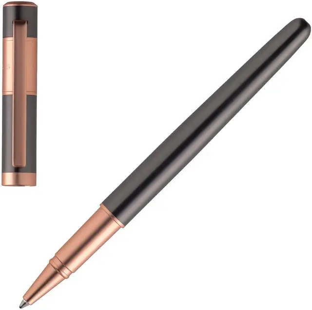 Ribbon line pens are an essential writing instrument. Their lightweight, balanced shapes, adorned with HUGO BOSS ribbon, are reinterpreted in seductive new finishes: cutting-edge mixes of matte metal veneers. This item is available as fountain pen, roller pen and ballpoint pen.