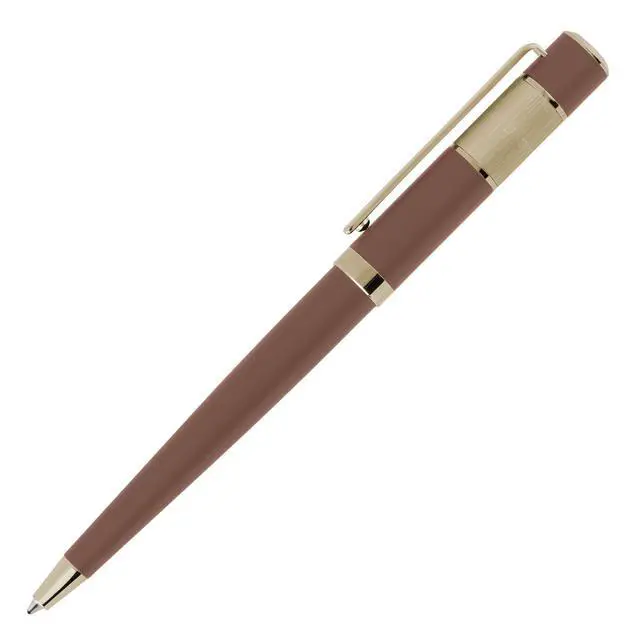 This year, the ribbon is also available in feminine finishes. The sleek silhouette and the light gold accents of the brushed aluminium ring on the cap give this item a timeless and refined elegance. This ballpoint pen is available in black, grey or blush.