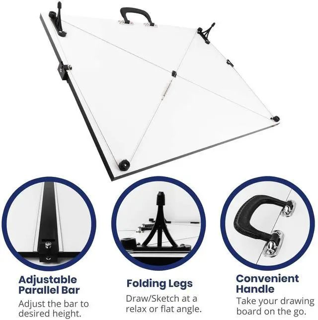 HIGH QUALITY DRAWING TABLE- Pacific Arc's premium drawing board has a 5/8 inch solid core smooth melamine surface to create precise and accurate drawings. The straight edge aluminum parallel bar includes a braking mechanism to keep the board secured. ^^ ULTIMATE PORTABILITY - Outfitted with folding legs and a carry handle, this portable drafting board is easily transported and can be used on any level surface. The adjustable design allows for easy set up on the go. ^^ THE DRAFTING BOARD FOR PROFESSIONALS - Pacific Arc's drawing board is designed to be used with a variety of drafting supplies.