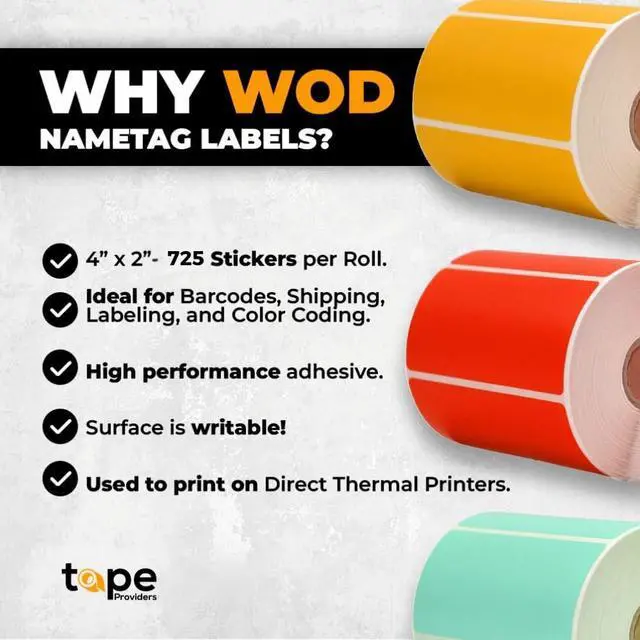 ^^ FOR YOUR HOME OR OFFICE These WOD Rectangular Labels will allow you to manage your inventory either at home, warehouse, or office for reorder points, product dating or special instructions, also in the classroom will help you keep the utensils, books, and equipment well identified. ^^ DIRECT THERMAL PRINTER FRIENDLY - compatible with Rollo, Zebra / Eltron, Intermec, Datamax, Fargo, Sato, NEX and other Direct Thermal Desktop printers. Compatible printers include but not limited to: GK420T, GX420T, GX430T, GK420D, GC420D, GC420T, GX420D, LP 2824, LP 2844, LP2442, TLP2844, ZP450, LP2442, LP2443, LP2642, LP2742, LP3642, LP3742, TLP3842, TLP3844Z, R402, T402, G Series (Ribbons, Toner & Ink are NOT needed) ^^ WOD Tape stands as a top-selling brand on, dedicated to providing only the highest quality tape products. As a USA-based small business, our commitment to excellence extends to both our products and customer service.