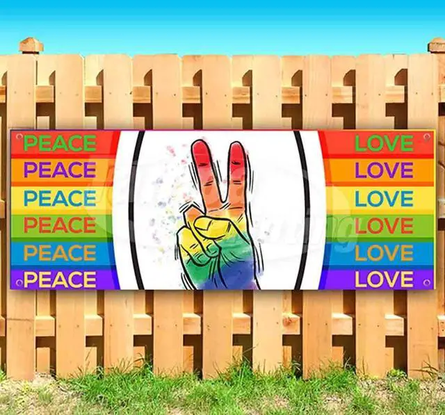 Peace Love Banner 13 oz ^^ Non-Fabric ^^ Heavy-Duty Vinyl Single-Sided with Metal Grommets