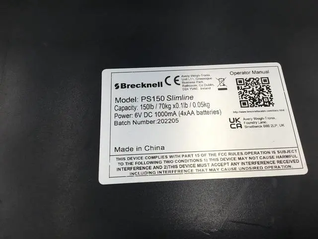 Package Includes: Brecknell PS150 Slimline Digital Scale 150lb / 70kg x 0.1 lb / 0.05 kg w/o Adapter