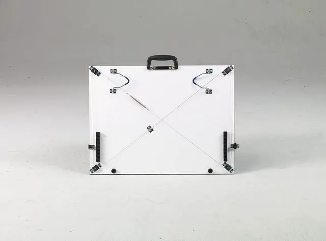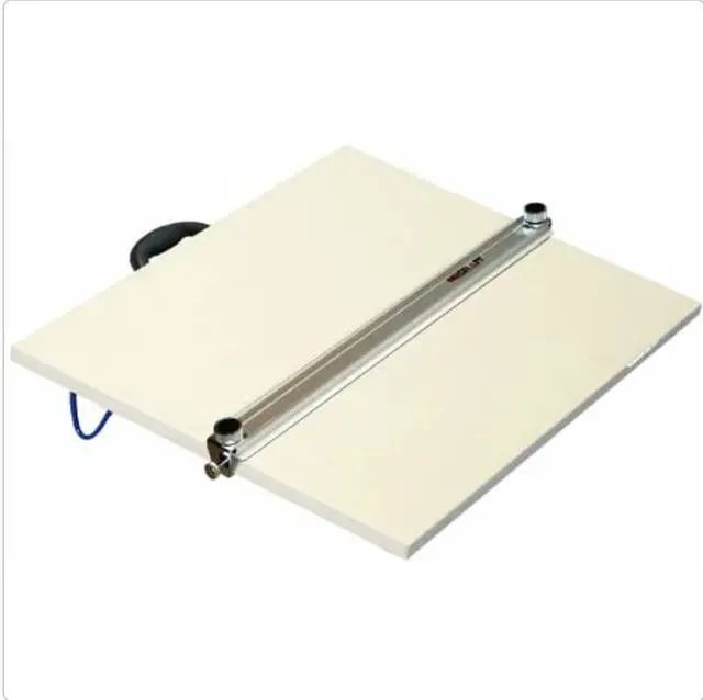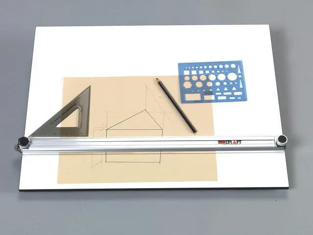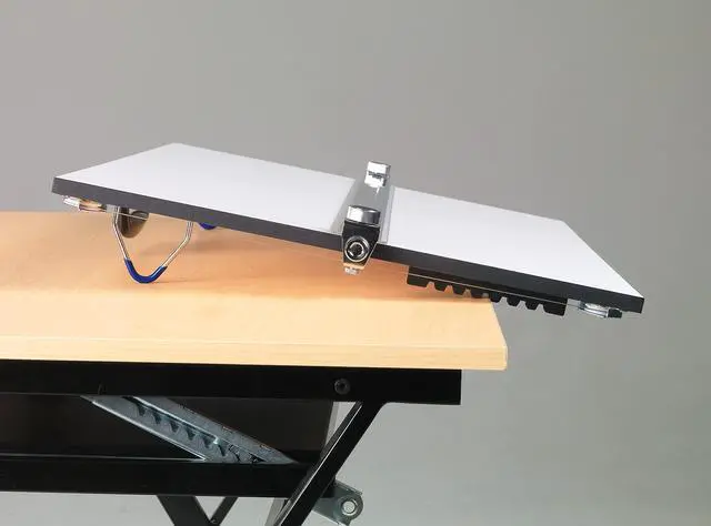 Martin Universal Design Pro-Draft Parallel Straightedge Board, 24" x 36", White Melamine, 1 Each is the only parallel straightedge board utilizing an anti-warp aluminum body straightedge for strength and stability. Features folding rubber tip legs and non-skid rubber feet. Also includes deep ribbed strips so that the unit can be adjusted over the table edge to bring the artwork into the users lap. Each side of the unit has large knobs for adjusting the straight-edge to align with the artwork/drawing and stay parallel. High resin particle board to prevent board breakage. Includes comfortable easy-to-grip handle for easy transport.