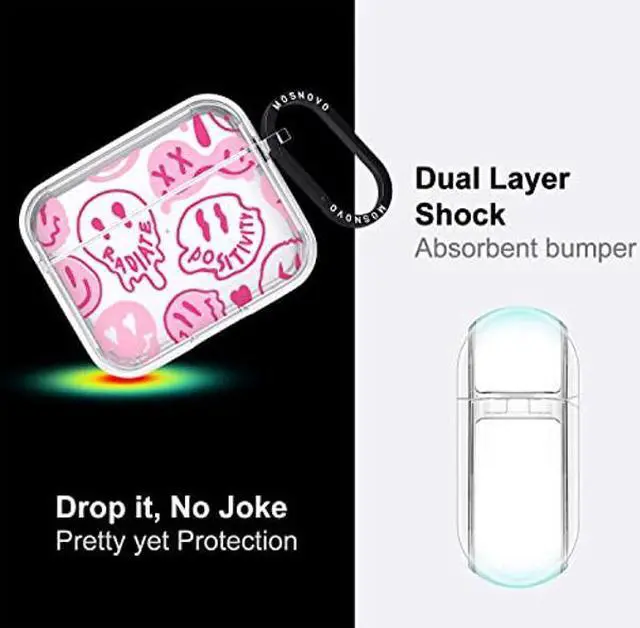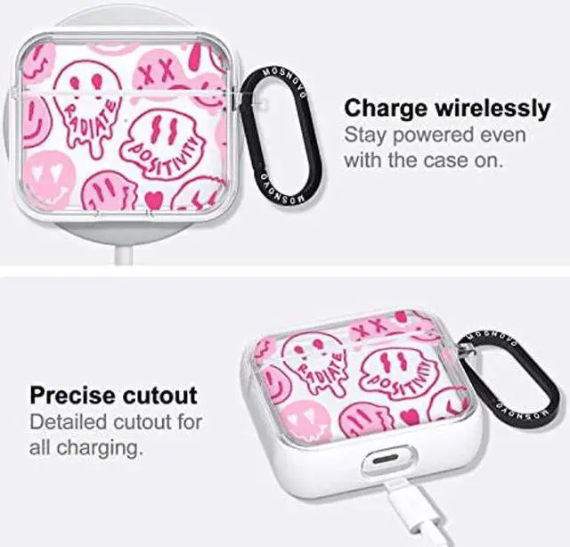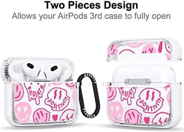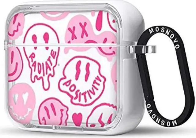 MOSNOVO for Airpods 3 Case, for Airpods 3 Cover, Pink Dripping Smiles Face Print Protective Clear Case with Shockproof Dual Layer Hard Luxe Metal Ring Designed for AirPods 3rd Generation