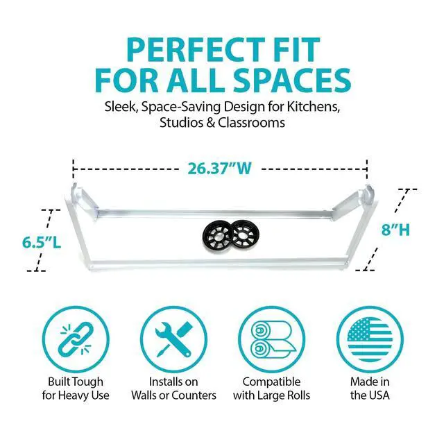 WIDE PAPER ROLLS: Unlock creativity with our kraft paper roll dispenser, compatible with butcher paper roll, art paper roll, and kraft paper roll up to 24 inch wide and 9" in diameter. Paper is not included and must be purchased separately, giving you freedom to choose the roll that suits your needs for crafts or signage. ^^ WITH CUTTER BAR FOR CLEAN TEARING: Enjoy smooth, straight edges every time with our butcher paper holder and cutter, featuring a paper dispenser with cutter bar for clean tearing. It also works as a craft paper roll holder, supporting brown paper roll, kraft paper roll, or black craft paper roll options for quick updates. ^^
