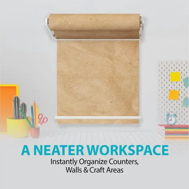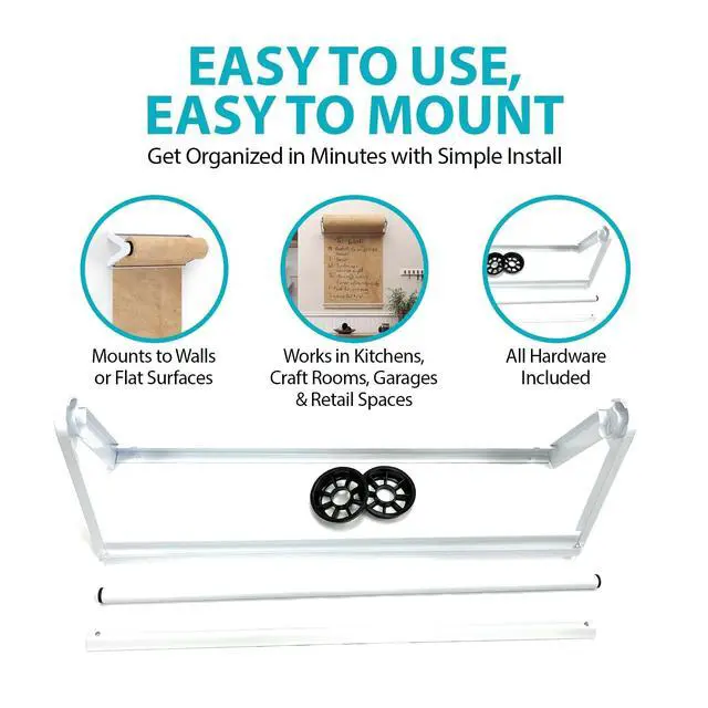 WALL MOUNT HARDWARE INCLUDED: Enjoy hassle-free setup with our wall mount paper holder, including mounting hardware, plastic end caps, and core plug inserts for secure installation. Use it as a paper roll holder wall mount or kraft paper dispenser wall mount to keep your paper roll accessible and ready for cutting, adding convenience to any space.