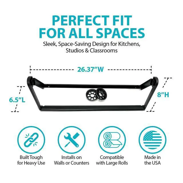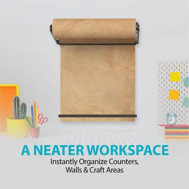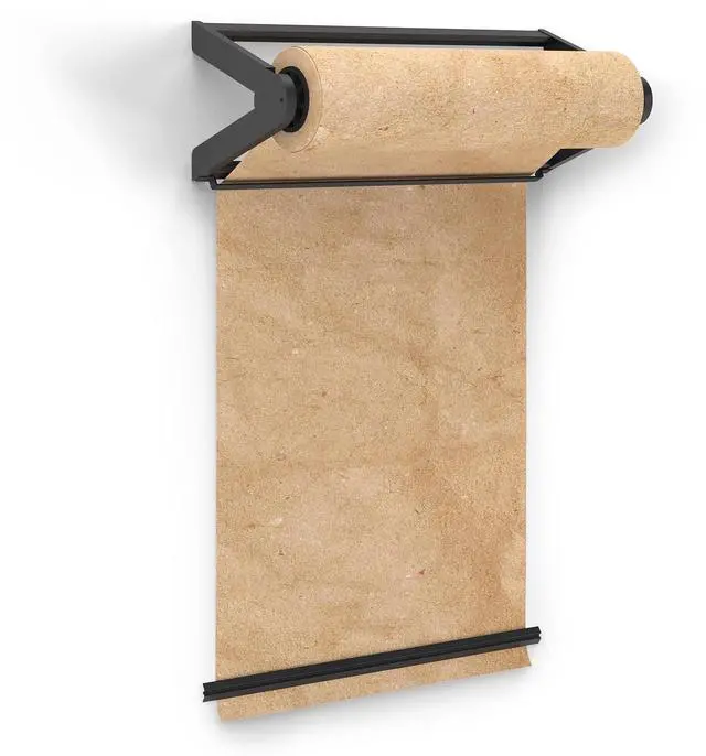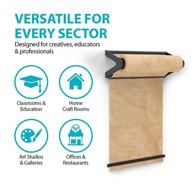 WIDE PAPER ROLLS: Unlock creativity with our kraft paper roll dispenser, compatible with butcher paper roll, art paper roll, and kraft paper roll up to 24 inch wide and 9" in diameter. Paper is not included and must be purchased separately, giving you freedom to choose the roll that suits your needs for crafts or signage. ^^ WITH CUTTER BAR FOR CLEAN TEARING: Enjoy smooth, straight edges every time with our butcher paper holder and cutter, featuring a paper dispenser with cutter bar for clean tearing. It also works as a craft paper roll holder, supporting brown paper roll, kraft paper roll, or black craft paper roll options for quick updates. ^^