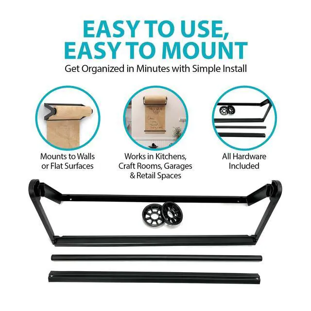 WALL MOUNT HARDWARE INCLUDED: Enjoy hassle-free setup with our wall mount paper holder, including mounting hardware, plastic end caps, and core plug inserts for secure installation. Use it as a paper roll holder wall mount or kraft paper dispenser wall mount to keep your paper roll accessible and ready for cutting, adding convenience to any space.