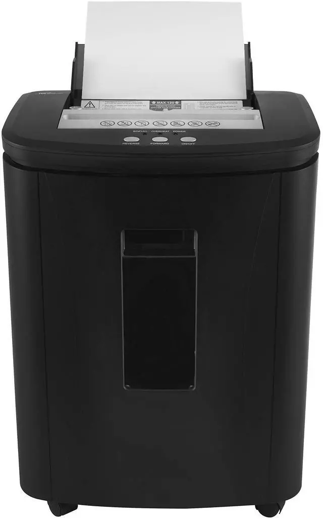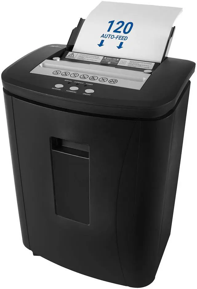 High-Capacity Shredding capabilities with RAF-C120 Auto Feed Cross Cut Shredder. With Patented Auto Feed Technology, this unit shreds approximately 900 sheets/ hour and includes 5 sheet capacity via manual feed slot for small jobs. Feel confident and secure when shredding sensitive documents. This unit features Cross Cut Shredding P-4 Security Level destroying material into (4 mm x 20 mm) paper particles. This unit also shreds paper clips, staples and credit cards. For your convenience, there is a see-through window to easily determine when the bin is full.