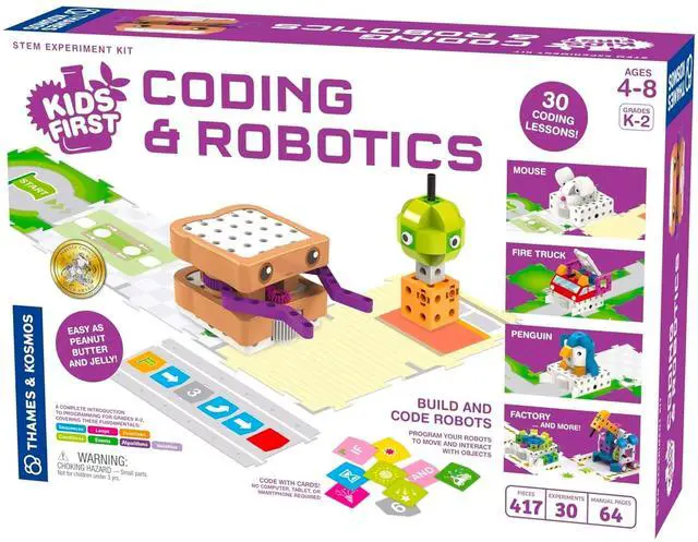 Introducing Thames & Kosmos, established in 2001, dedicated to enhancing informal science learning beyond classrooms. Initially focused on STEM, their mission has broadened to include arts, crafts, and games. They emphasize hands-on learning, aiming to provide all children with tangible, educational experiences. Discover 'Kids First Coding & Robotics' - coding for preschoolers! Meet Sammy, a robot disguised as a peanut butter and jelly sandwich, teaching coding fundamentals to K-2 students. No tech devices needed; simply arrange physical code cards to program Sammy. Make him move, activate gears, light up, play sounds, and more! Complete coding challenges to learn programming basics.
