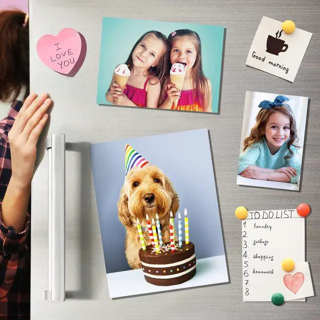 Turn your images, designs, or paper into magnets with ease ^^ Strong and durable flexible magnetic sheets ^^ Simply peel back the protective paper and stick your photo or design on it ^^ Perfect for turning photos into magnets ^^ Made in the USA