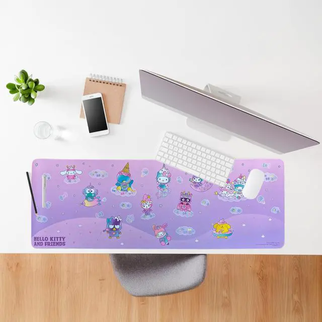 Transform your desk into a Hello Kitty paradise with this adorable Hello Kitty mouse pad! Measuring a generous 36 inches wide by 12 inches high, this officially licensed design serves as both a stylish mouse pad, charming placemat, gaming pad, and pretty kitchen decor. The pink-themed runner features the beloved Hello Kitty character in a cute pink kawaii style that's perfect for gaming setups, study spaces, or room decor. The extended size provides ample space for your mouse, keyboard, and other desk essentials while adding a delightful touch to your workspace.