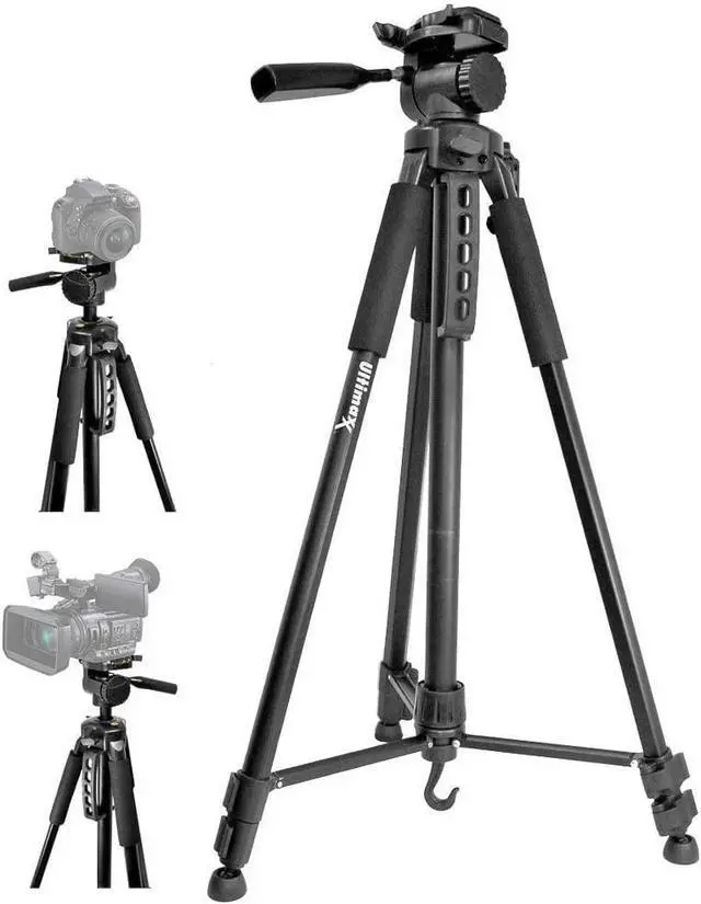 This tripod extends to 75-Inch and folds down to a mere 28-Inch. The three-way fluid pan head allows the photographer to achieve superior control when handling the camera. The tripod leg tips have rubber feet, providing a strong and stable mount for your camera. With fully adjustable locking legs, you can go from high to low angle shooting quickly. It has a geared elevator section and a carrying handle. It has 3-section aluminum legs with rubber self-leveling leg tips. It includes a light carrying case and comes with a 3 year warranty.