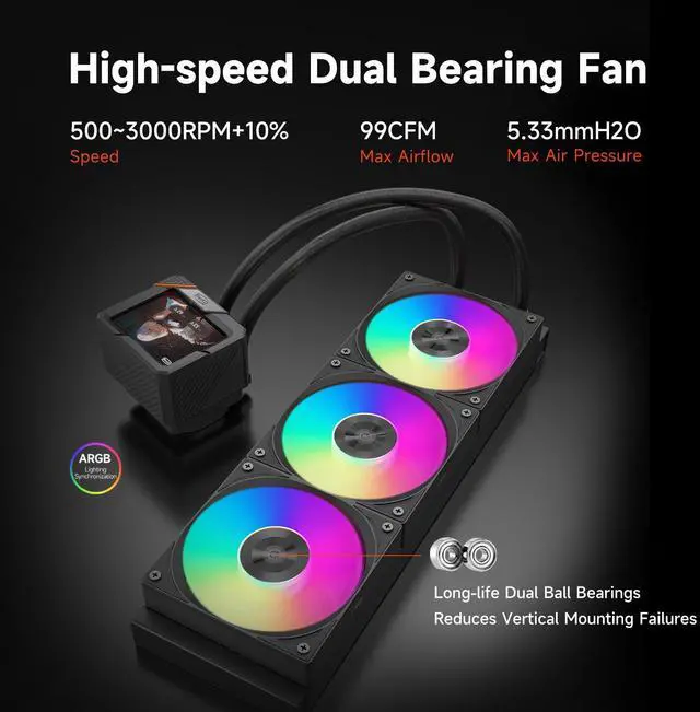 PCCOOLER Liquid Freezer AIO CPU Cooler, 3.5 -inch IPS Display, 360mm ARGB Water Cooling, Durable Dual Ball Bearing Fan, Compatible with AM4/AM5, LGA115X/1200/1700/1851 (CPS GT360 Black)