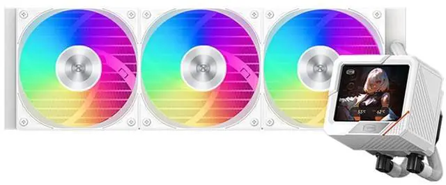 3.5 -inch IPS DisplayStunning 480x480 resolution for vibrant colors and wide viewing angles, customizable with system information, animations, or video playback. ^^ Real-Time MonitoringDisplay real-time system parameters and performance metrics for an immersive and interactive cooling experience. ^^ Advanced Ceramic Pump DesignLow noise and high durability with an all-ceramic bearing pump solution for superior cooling and long-lasting performance. ^^ 14-Channel High-Density Radiator14 channels for enhanced heat dissipation, increasing thermal capacity over standard designs. ^^ Universal CompatibilitySupports AMD AM4/AM5, Intel LGA115X/1200/1700/1851 sockets for seamless integration with your system. ^^ Durable Dual Ball Bearing Fan28mm thick design with superior airflow and static pressure, featuring high-quality dual ball bearings for quiet, reliable operation.