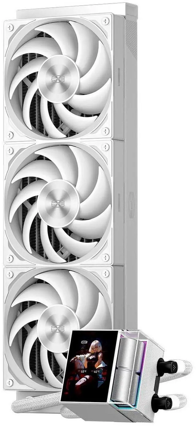 Premium Cooling Power with 315W TDP Support Utilizes a 27mm thick aluminum radiator and next-gen pump for enhanced thermal performance, ideal for high-performance CPUs and gaming systems. ^^ 2.4 -Inch IPS LCD Display on Waterblock Features a 240320 full-color screen for real-time temperature monitoring, system stats, or animated logosbringing control and personalization to your build. ^^ Advanced F5 R120 OC ARGB Fans Included Comes with 3 high-airflow 120mm ARGB fans running up to 2500 RPM, delivering 90.56 CFM airflow and 4.07 mmHO static pressure with only 39.8 dBA of noise. ^^ Silent High-Efficiency Pump Design The 2600 RPM pump ensures low-noise (15 dBA) liquid circulation while maintaining optimal cooling for demanding workloads or overclocking.