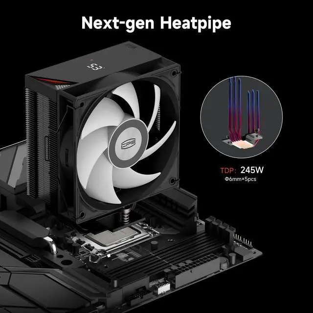 Real-Time Temperature Display Stay informed with the integrated digital screen showing real-time CPU temperatures for better system monitoring and protection. ^^ Powerful Cooling with 4/5/6 Heat Pipes High-efficiency heat pipes and dense fin stacks ensure excellent heat dissipation, keeping your CPU cool even under heavy loads. ^^ ARGB Lighting & Non-RGB Option Customize your style with stunning ARGB lighting effects, or choose the non-RGB version for a clean and professional look. ^^ Wide Compatibility Supports Intel LGA 115X/1200/1700/1851 and AMD AM4/AM5 platforms, ready for current and future PC builds. ^^ Quiet and Durable Operation Equipped with a high-performance fan optimized for silent operation, ensuring stable, long-lasting cooling without distracting noise.