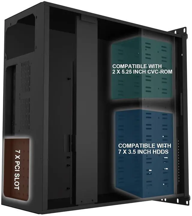 Server Cabinet Case:The 4u server cabinet case adopts a combined internal architecture.With 7 x PCI slot, providing additional storage space for hardware, networks, servers, or audio/video accessories.