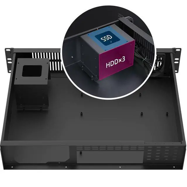 2U Micro ATX Compact Rackmount 3 x 3.5-inch HDD and 1 x 2.5-inch SSD, Chassis Support ATX PS2 PSU, USB