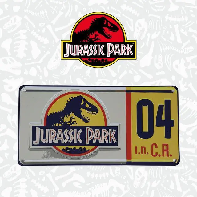 This metal distressed replica numberplate from a Jurassic Park vehicle measures 30x15cm. The numberplate has holes in each corner so to make it easy to pin to your wall