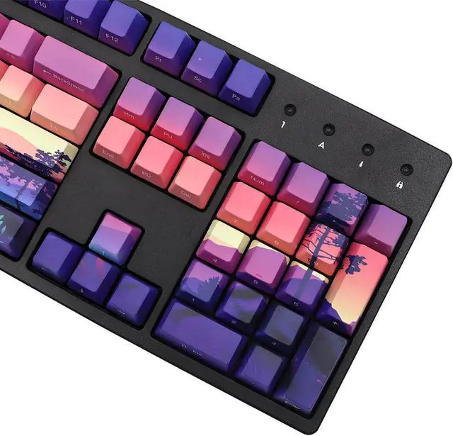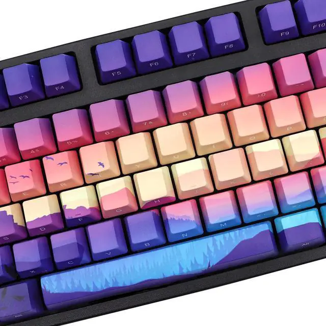 [(Colorful keycaps)] This is a purple themed keycap, the keycap set is a combination of purple, pink and other colors, a good present for 110 key mechanical keyboard lovers; the special color scheme helps update your keyboard and is a good choice for your DIY mechanical keyboard