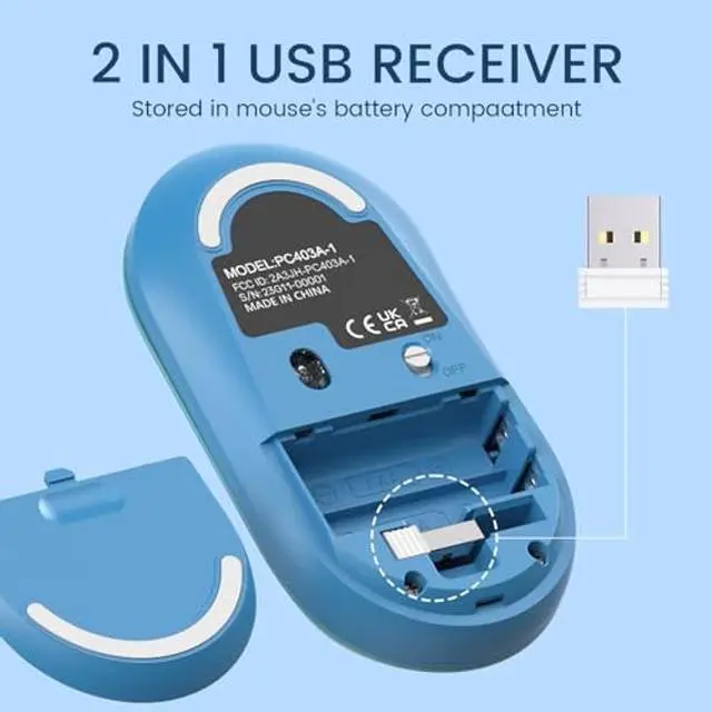 [Effortless Wireless Connectivity]No more hassles with complicated setups! 2-in-1 USB receiver allows for easy plug-and-play functionality, delivering a stable wireless connection up to an impressive 10 meters (33 feet) away. Rest assured, our cutting-edge anti-interference technology have seamless performance without delays or disconnections, making work a breeze. And don't worry about losing the receiver; we've smartly stored it inside the mouse battery compartment.