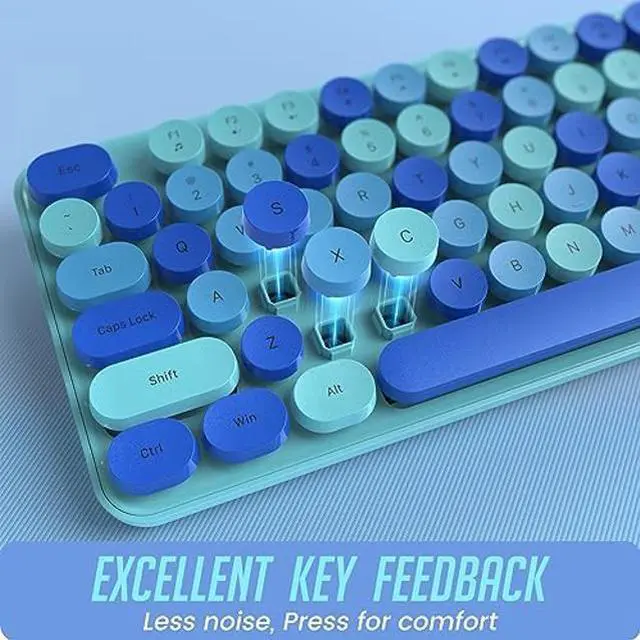 Wireless Keyboard and Mouse, LIZRROT Silent Keyboard Mouse Combo, Full-Sized Colorful Typewriter Keyboard with Round Keycaps, 2.4G Cute Mouse Compatible with PC/Laptop/Computer (Blue)