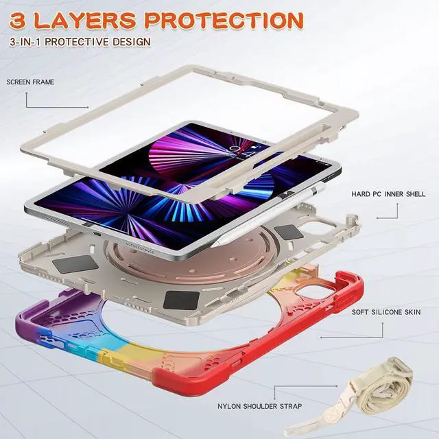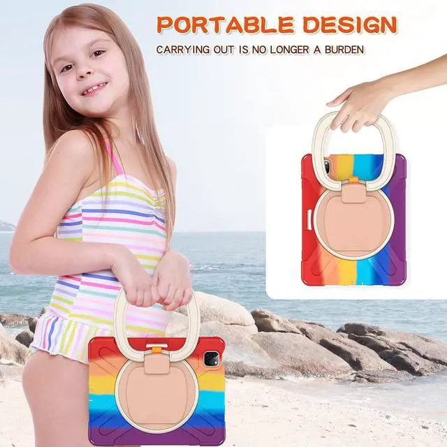 Generation Characteristic: 1. Smart protective case made of full body protection ultra-thin heavy-duty shockproof soft silicone and plastic 2. with multifunctional handle-kickstand. The 360 degree rotating Kickstand provides multi-angle viewing(easy to grip & comfortable to hold & stable rotatable & foldable portable), easy to use your iPad in your outdoor traveling, working, gaming with kids. Hanging your iPad on the wall easy access to your favorite shows 3. Nylon portable shoulder strap allows carrying your iPad conveniently when you are at work, on a trip or outdoors. You could even hang it behind the headrest of the car seat or wherever you want 4. Built-in pencil holder, grab your iPad pencil effortlessly whenever you want, easily carry your iPad pencil with your device 5. Convenient to use all the controls and features