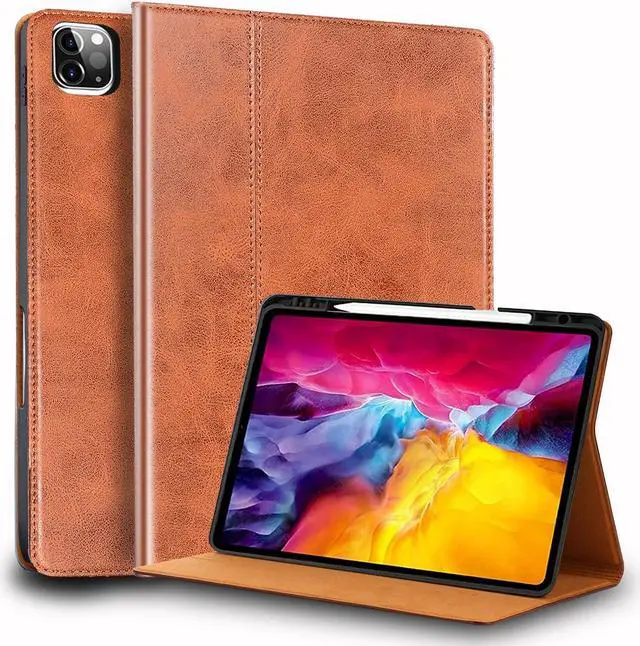 NANRUIL for Ipad Pro 12.9 inch Case 6th/5th/4th/3rd Gen Genuine Leather Cover Protective for 2022/2021/2020/2018,Built-in Pencil Holder and Auto Wake/Sleep.Brown