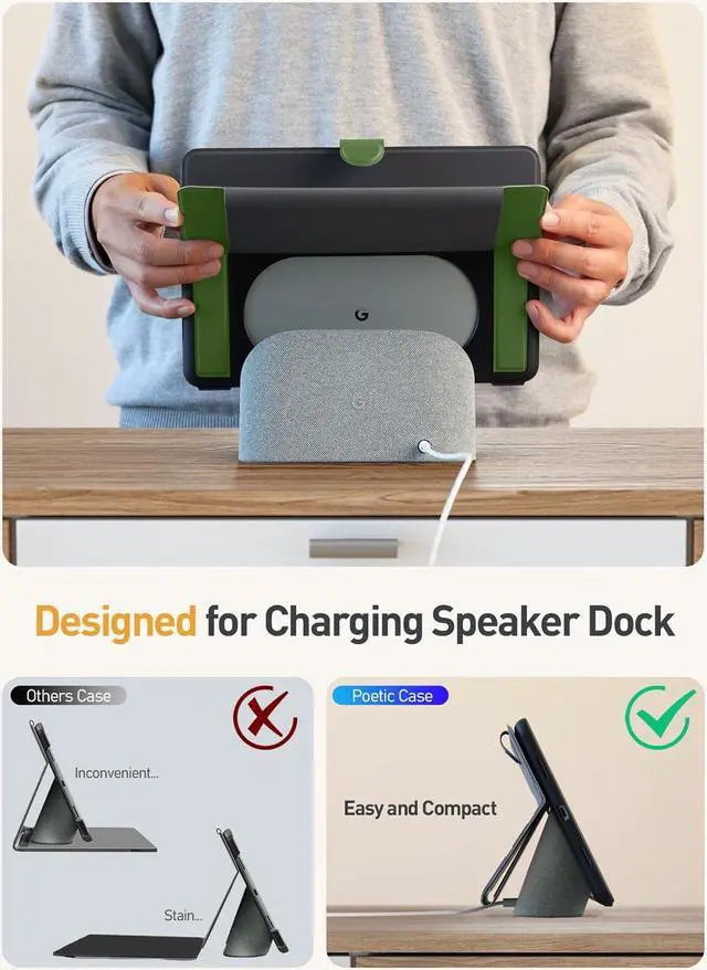 Poetic Explorer Magnetic Folio Stand Case Designed for Google Pixel Tablet (2023), Magnetic Fidget Mount Case for Google Pixel Tablet, Military Green