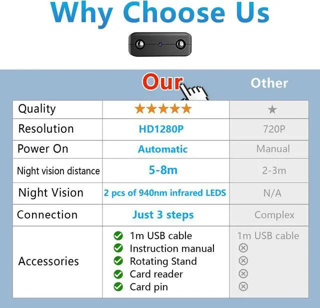 [(Can't get any smaller)] -- XDWIFI is the latest design for 2023. The camera is only the size of a coin, size: 1.57X1.18X0.5 in, easy to carry, you can remotely view the live video of the app from anywhere in the world. As a security camera, keep a close eye on your home or office.