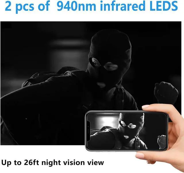 [(Upgrade night vision)] -- XDWIFI biggest feature is night vision, using two 940nm infrared lights, night vision distance up to 26ft, so you can see very clearly in a low light environment, or even in total darkness, the infrared light is not glowing. Therefore, suitable for installation indoors, outdoors, companies, parking lots and other places to protect your safety.