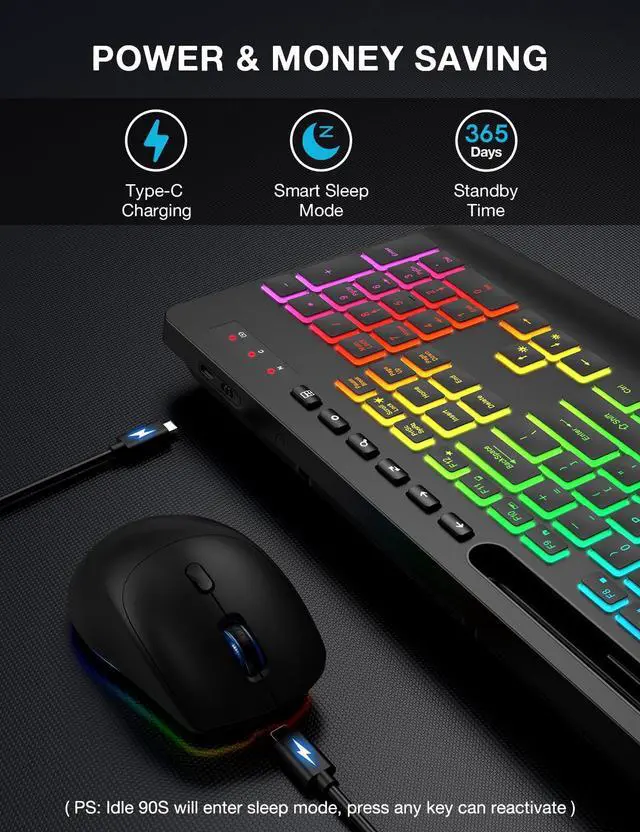 FIND YOUR COLOR: The wireless keyboard and mouse feature color backlit. And both the keyboard and mouse can quickly switch/turn off the backlight with one step. In addition, our cordless combo has 7+1 backlight colors, and the keyboard has 3 backlight modes to choose from, which can help you work better at night and use light effects to improve the atmosphere at work space.