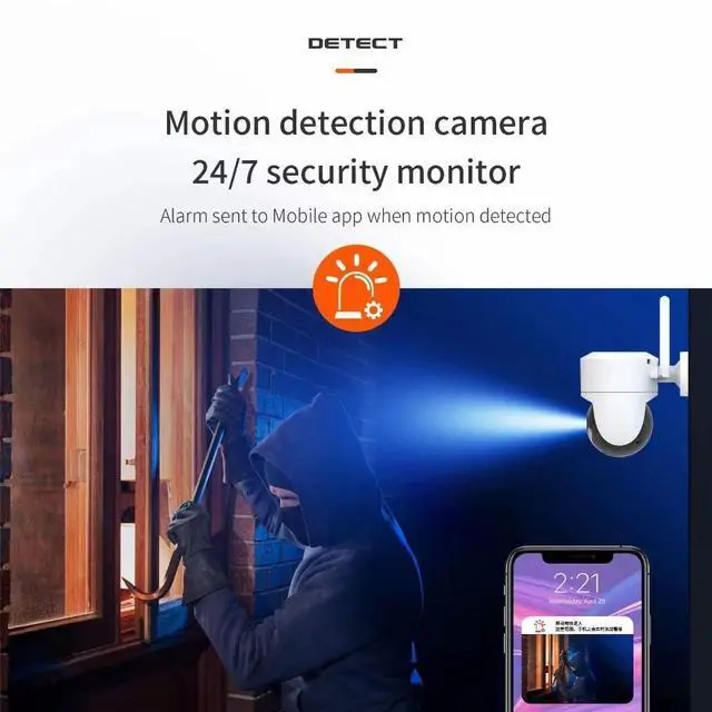 Floodlight and Sound Alarm - Built-in spotlights will be activated when motion is detected at night, alarms the security siren. Human detection reduces false positives of moving cars or leaves.
