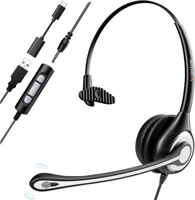 [(Plug and Play with USB & 3.5mm Jack)] : The usb headset with microphone is compatible with 3.5mm jack or USB devices: PC, tablet, Mac, iOS, laptop, Android phone. Additionally, its extra-long cable about 7 feet ensures uninterrupted connectivity, no need worry about low battery and no signal.